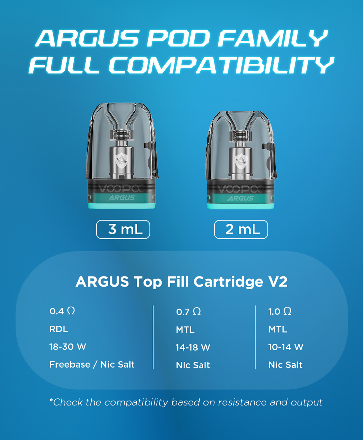 Compatible avec les cartouches ARGUS Top Fill V2, il garantit un remplissage facile et propre. Sa batterie de 1350mAh et sa puissance max de 30W assurent une vape puissante et durable.