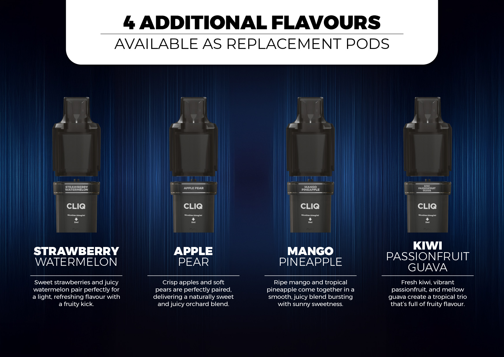 Le Cliq propose une gamme de 6 appareils starter kits et 10 pods compatibles, offrant ainsi aux utilisateurs une variété et des performances incomparables, leur permettant de personnaliser totalement leur expérience de vapotage.