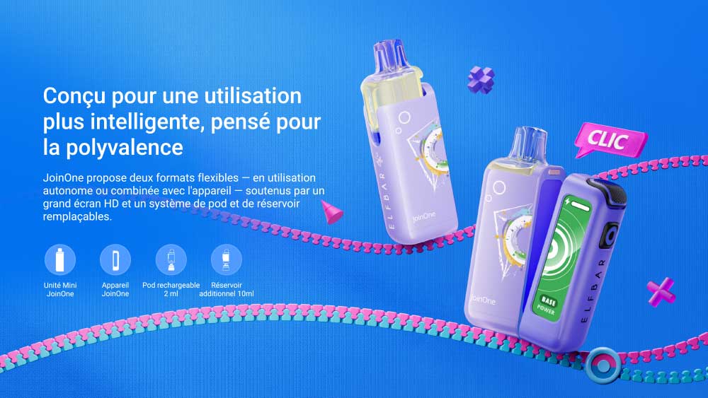 Le JoinOne 40K est une cigarette électronique innovante conçue pour allier performance et flexibilité. Utilisable en mode solo avec son unité Mini ou en mode combiné avec l’appareil principal, elle s’adapte à tous les usages. Dotée d’un écran HD dynamique, de trois modes de puissance et d’un airflow réglable, elle offre une expérience personnalisée. Sa double batterie longue durée avec recharge rapide garantit une excellente autonomie. Grâce à son système de pods et réservoirs remplaçables, elle permet de varier facilement les saveurs tout en conservant un produit durable, pratique et intuitif.