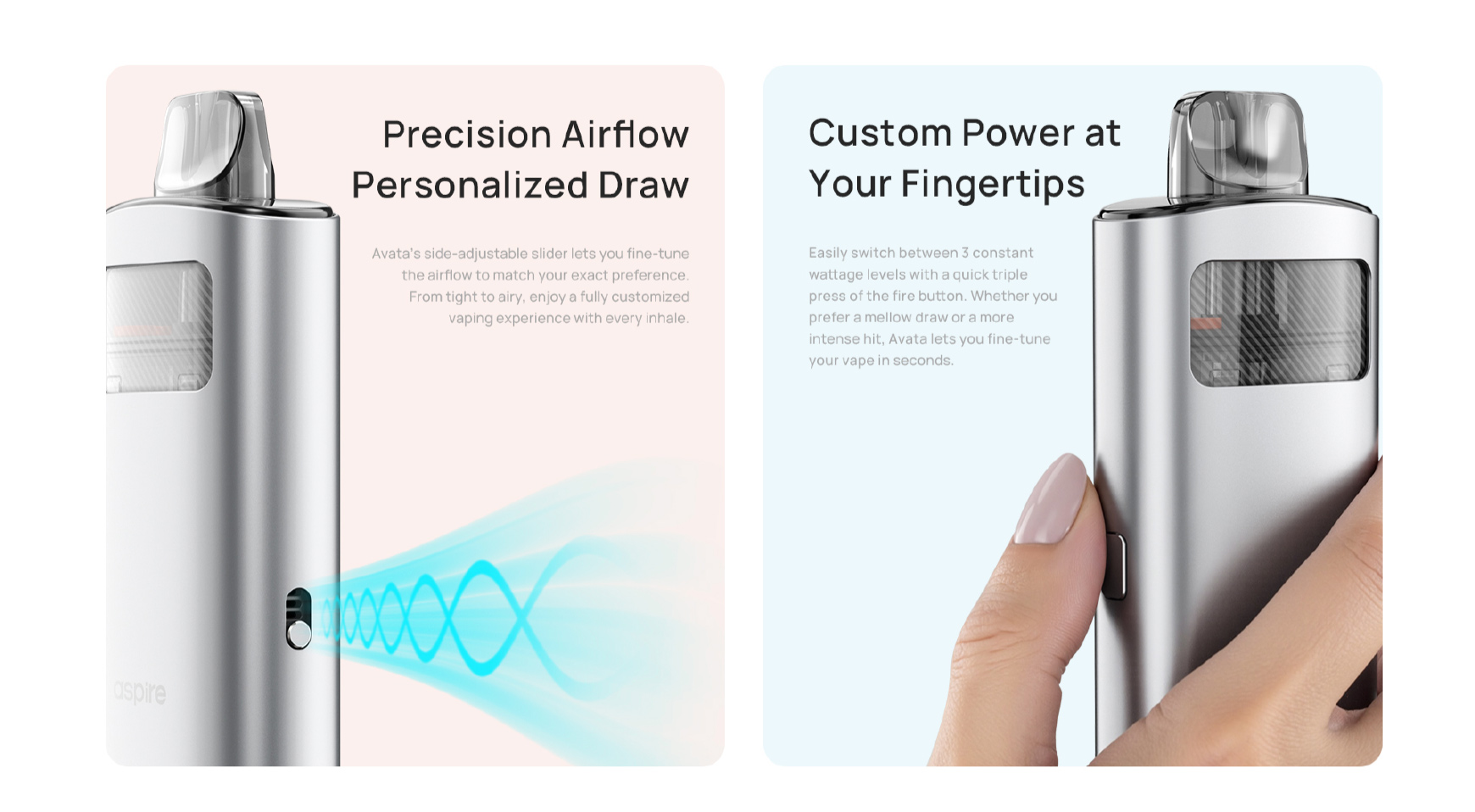 Que vous préfériez une inhalation douce ou un hit plus intense, Avata vous permet d’ajuster vos réglages en quelques secondes.