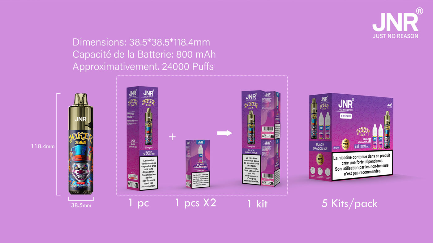 • Livré avec deux flacons d'eliquides premium 10 ml
