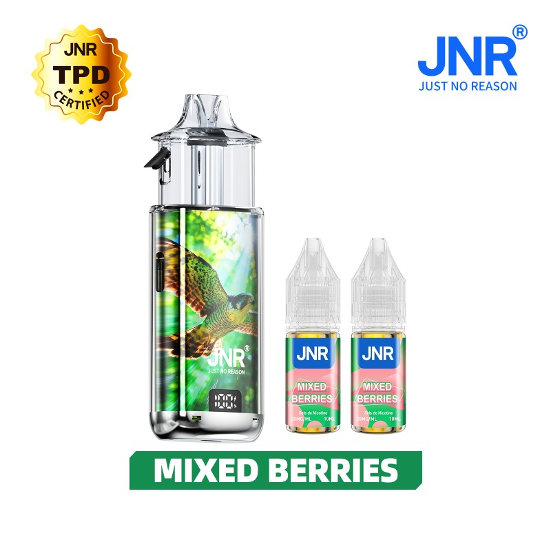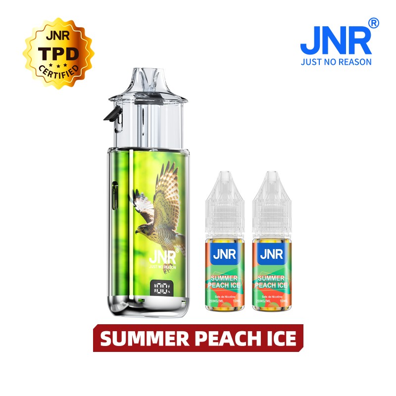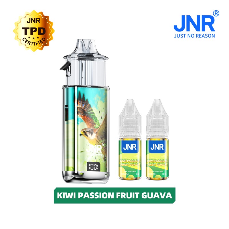 Cette version est livrée avec 2 e-liquides JNR de 10ml aux sels de nicotine dosés à 20mg, permettant une mise en service rapide et une autonomie prolongée dès l’ouverture. Son fonctionnement repose sur une cartouche interchangeable de grande capacité de 15ml, facilitant le remplacement tout en garantissant une vape propre et régulière, sans goût parasite dès les premières inhalations.