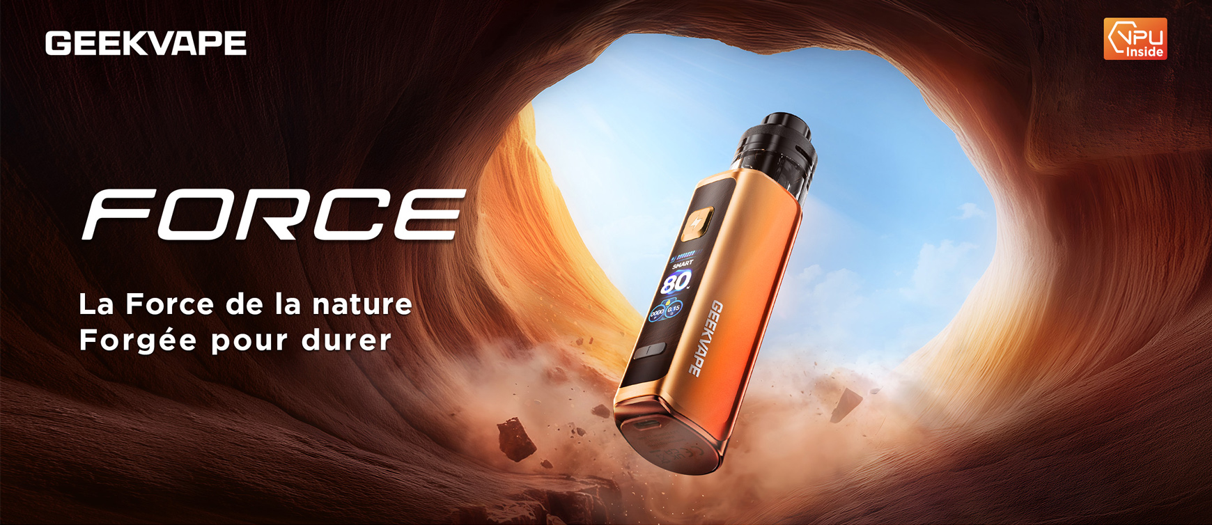 Le Kit Force de Geekvape est un pod robuste et polyvalent, doté d’une batterie intégrée de 3200mAh et d’une puissance réglable de 5 à 80W. Compatible DTL et MTL grâce à deux drip tips, il offre des résistances de 0.15 à 1.2 ohm et une cartouche de 5ml. Son écran TFT 0,96", ses modes Smart/Power et sa recharge USB-C 5V/2A en font un kit performant et pratique au quotidien.