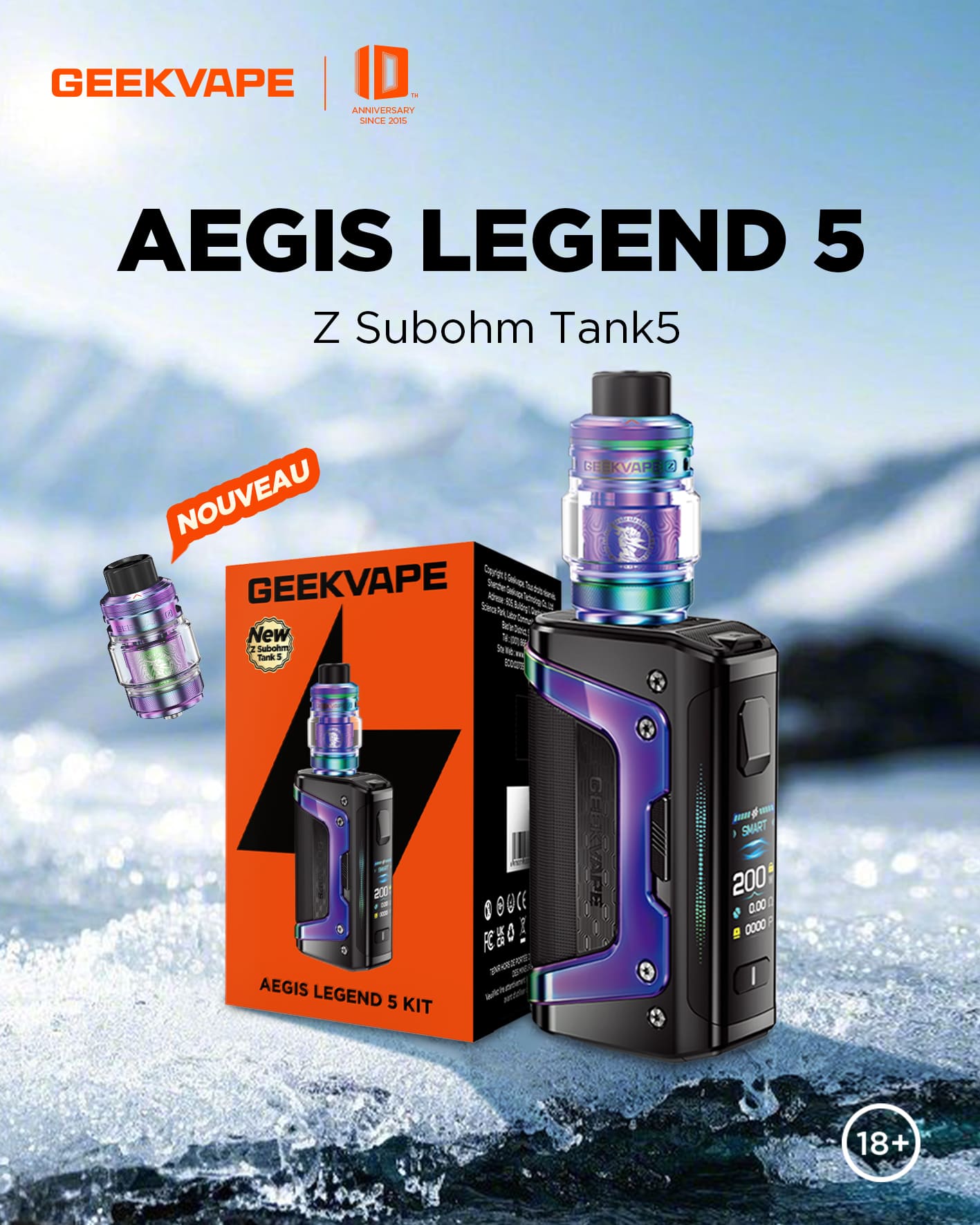 La légende continue avec le kit Aegis Legend 5 signé Geekvape. Taillé pour les amateurs de sensations fortes et de gros nuages savoureux, ce kit double accus s’impose comme une référence incontournable pour la vape en inhalation directe.